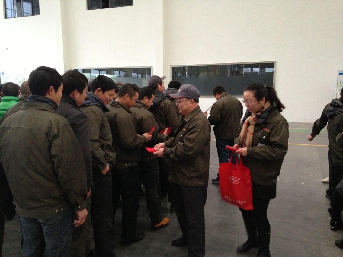 接著王悅民常務(wù)副總和管理部經(jīng)理嚴淑琴共同對所有員工派發(fā)春節(jié)紅包,預(yù)示著大家新的一年都有好的開始,也預(yù)示著南通鴻泰美好的未來!
